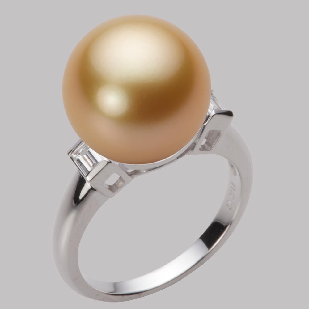 【南洋真珠】Pt900 ナチュラルゴールドパール 14.3mm リング ダイヤ0.40ct 13号【送料無料】【smtb-m】【真珠 パール】