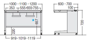 デュエナ 平机 デスク キャスター脚 引出し付き Kタイプ W1000×D600×H720mm /TO-DUK-106CCA □/□