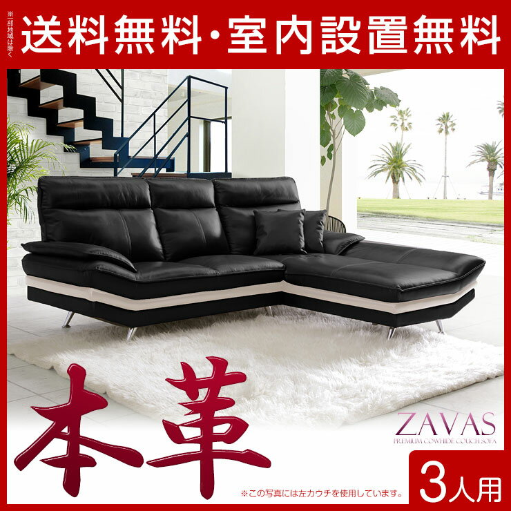 【送料無料/設置無料】 完成品 輸入品 低重心で高級感溢れる本牛革のプレミアムカウチソファ サバス 三人掛け ブラック 右カウチタイプ 幅230cm モダン 3人用 カウチソファー 黒 カウチソファ 3P 高級 三人掛け 本皮