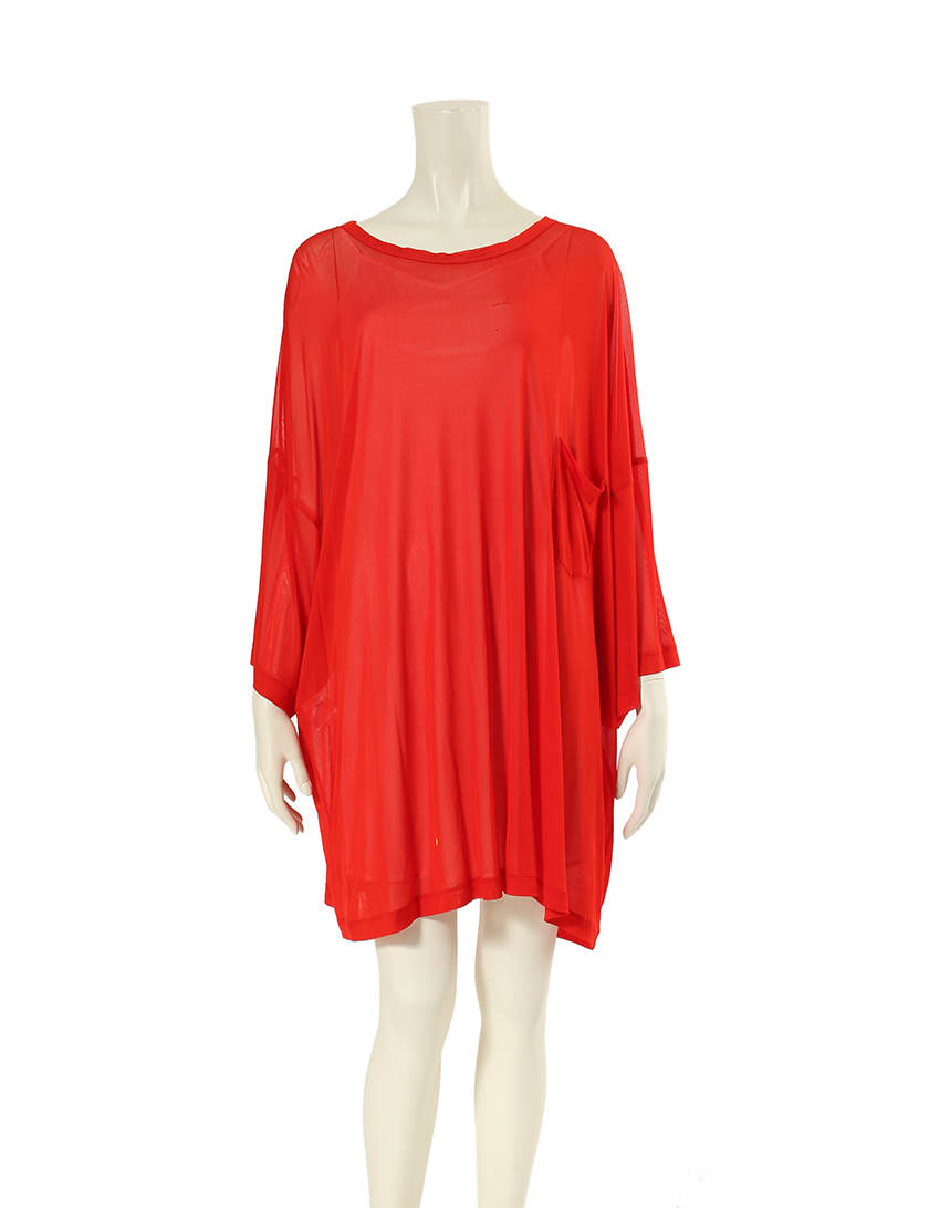 メゾン マルタン マルジェラ Maison Martin Margiela Tシャツ ワンピース 赤 レッド S 長袖 ミニ丈 レーヨン100% ポケット ビッグシルエット レディース 【ベクトル 古着】【中古】