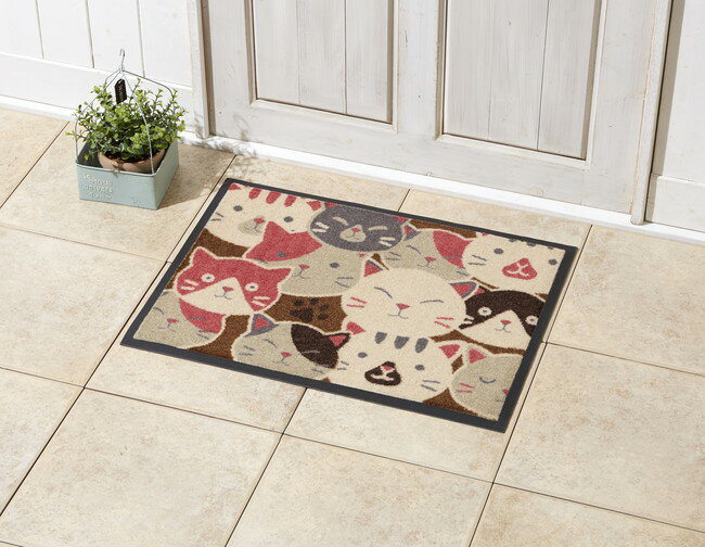 泥落とし屋外玄関マットねこねこ柄S 42x55cm マット 敷き物 敷物 かわいい(代引不可)