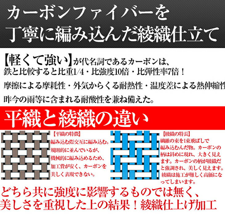 ◆レーシングカーにも使用される、剛性の強い綾織りカーボン素材です。